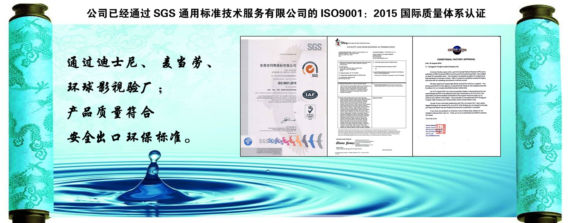 東莞市同輝商標輔料及包裝印刷有限公司是一家專業(yè)從事商標制造、包裝印刷的企業(yè),主營生產(chǎn)和銷售:各類織嘜商標,織章,印刷商標,印嘜,標簽印刷,不干膠商標,絲印商標,熱轉(zhuǎn)印標,無感商標,燙嘜,皮牌商標,電壓商標、商標帶、繡花標,布貼標、皮貼標、商標吊牌,彩卡,折盒等廣泛用于各行各業(yè)。工廠經(jīng)過多年的發(fā)展與開拓,規(guī)模日益發(fā)展壯大。從設(shè)計制作、工程研發(fā)、生產(chǎn)制造、產(chǎn)后加工、品檢、物流配送、售后服務(wù)等一套完整的優(yōu)質(zhì)服務(wù)體系,及優(yōu)秀的經(jīng)營管理團隊。已通過SGS ISO9001:2008(新版是2015版)國際質(zhì)量體系認證,產(chǎn)品質(zhì)量符合各國安全出口環(huán)保標準。承蒙國內(nèi)外客戶的大力支持,目前已有許多國際著名品牌定點授權(quán)我公司生產(chǎn),并是通過全球迪士尼FAMA認證驗廠,麥當勞驗廠,環(huán)球影視驗廠的供應(yīng)商,是各行業(yè)值得信賴并具有實力的合作伙伴。